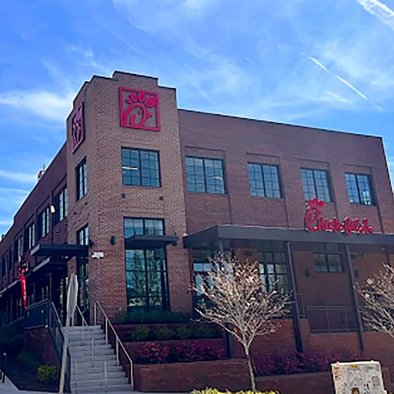 These projects often involve customized, non-prototypical layouts, including multi-story configurations, urban infill sites, and structures designed for high wind zones – supporting Chick-fil-A’s flexible approach to modern quick-service environments.