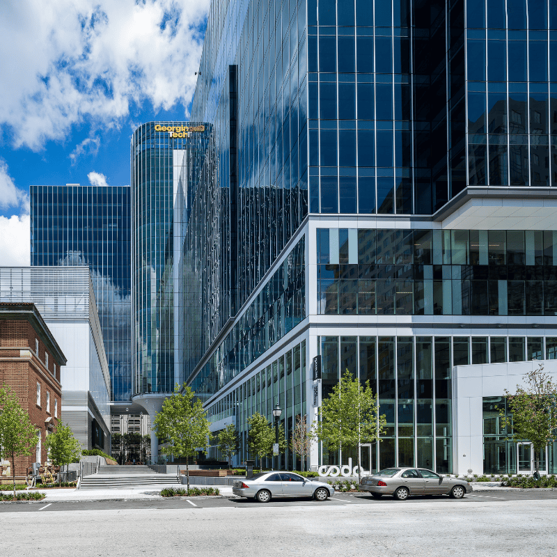 Positioned within Georgia Tech’s innovation ecosystem – home to nationally ranked engineering and computing programs – CODA provides companies with a unique opportunity to co-locate within a high-density hub of research and talent. To support flexibility and long-term adaptability, the structural system utilizes conventionally reinforced and post-tensioned two-way concrete slabs with shear walls strategically placed at elevator and stair cores to maximize open floor plates.