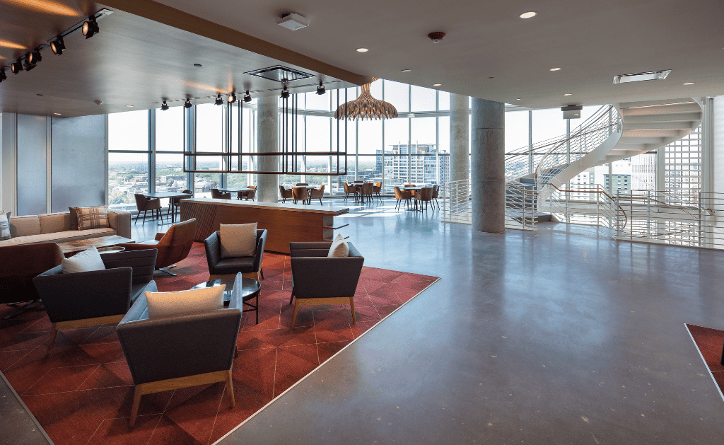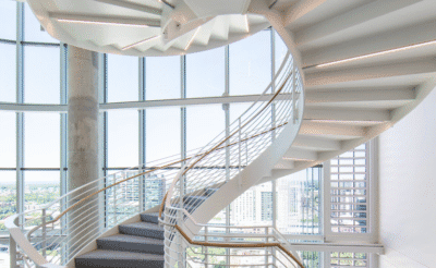 Positioned within Georgia Tech’s innovation ecosystem – home to nationally ranked engineering and computing programs – CODA provides companies with a unique opportunity to co-locate within a high-density hub of research and talent. To support flexibility and long-term adaptability, the structural system utilizes conventionally reinforced and post-tensioned two-way concrete slabs with shear walls strategically placed at elevator and stair cores to maximize open floor plates.