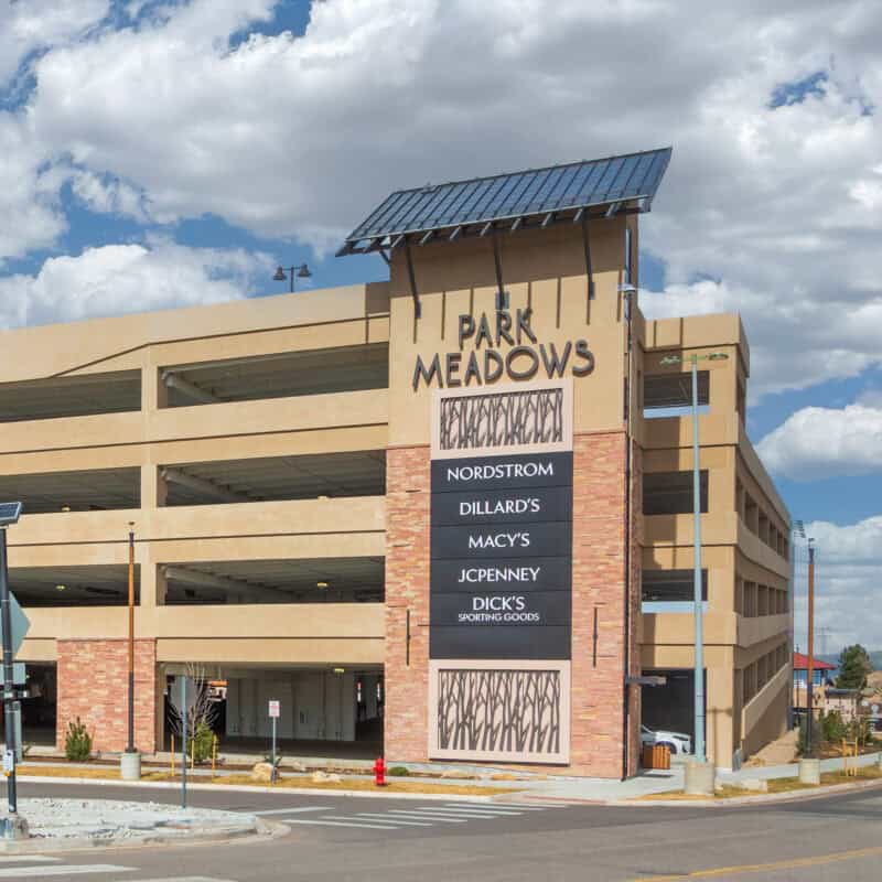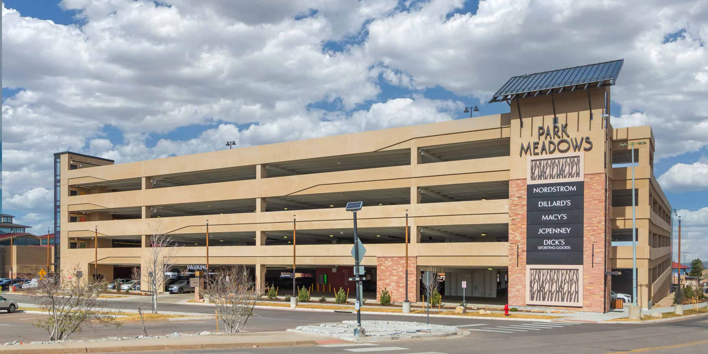 Designed as a high-capacity, efficient parking solution, the structure supports the ongoing growth of the Park Meadows retail district.