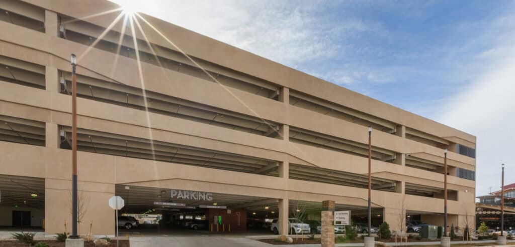 The Park Meadows North Parking Garage is a five-level, 994-space public parking structure serving one of the region’s busiest retail corridors.