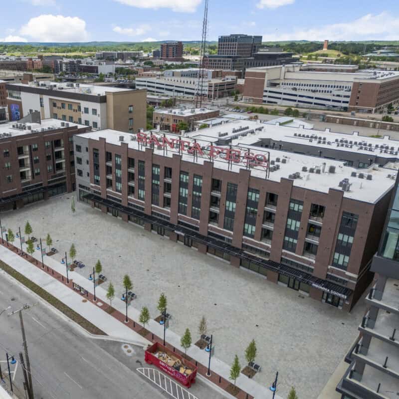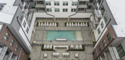 At the heart of the project is a 232,000 square foot multifamily complex featuring 184 modern residential units above 24,000 square feet of active ground-floor retail. Amenities, including a resort-style pool and courtyard, dog park, outdoor grilling stations and a European-style plaza, foster community and support a seamless live-work-play lifestyle. Complementing the residential component are a 12-story, 155,000 square foot office tower and a 716-space structured parking garage with additional retail, creating a fully integrated urban destination.